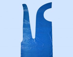 – Delantal protector de un solo uso fabricado en HDPE de color Azul (o cualquier otro color bajo pedido.) y con serigrafía